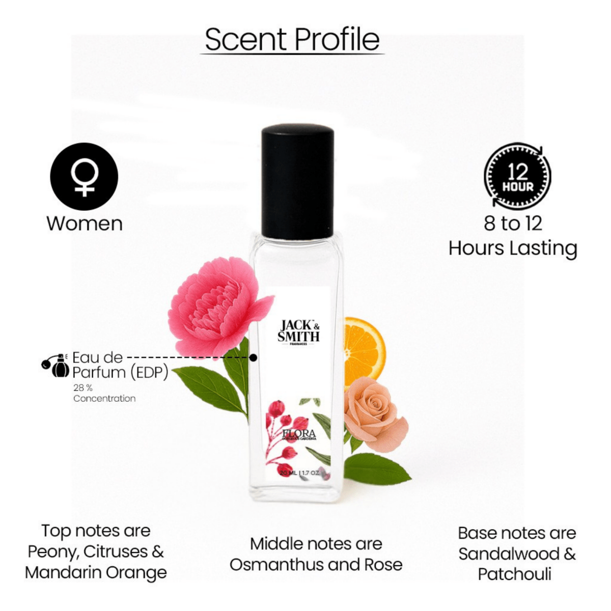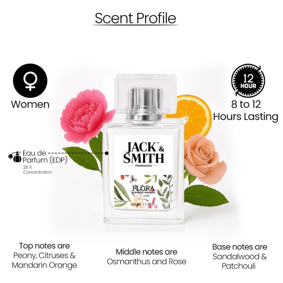Flora by Jack & Smith is a graceful and radiant fragrance inspired by Gucci Flora. Designed for today’s elegant woman, it captures the essence of a lush floral garden in full bloom—delicate, fresh, and deeply enchanting.