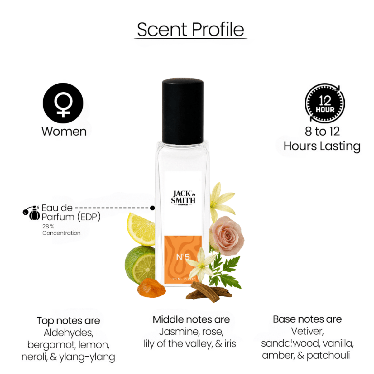 Introducing N°5 by Jack & Smith, a signature unisex fragrance that redefines elegance and modern luxury. Crafted with precision and passion, this perfume captures the essence of timeless sophistication, designed for those who carry their charm with subtle grace and enduring presence.
